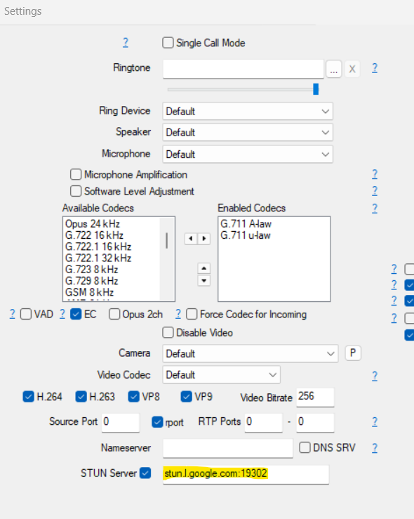 • Check the box for STUN server and enter the following into the STUN server field